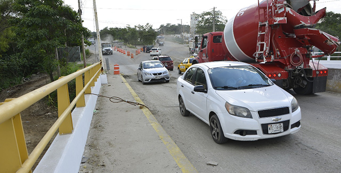 Indicó que los diferentes niveles en los aproches, se debe a que el puente debe levantarse para realizar trabajos de sustitución de los nuevos apoyos de neopreno y los esféricos tipo tetrón. Añadió que al concluir los trabajos de izaje de las estructuras y el respectivo mantenimiento y reposición de la carpeta de rodamiento, quedarán al mismo nivel.
