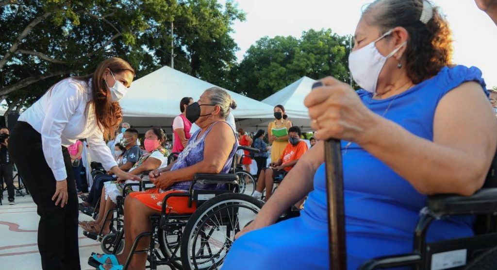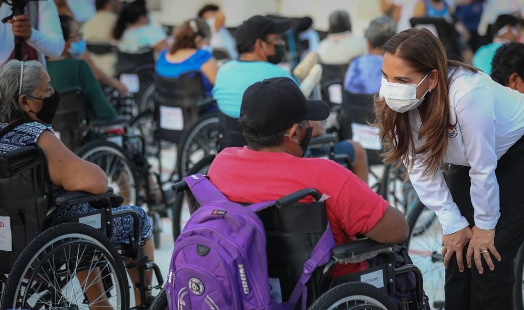 Cancún, Q. Roo, miércoles 15 de septiembre de 2021, poderycrítica. La Presidenta Municipal Mara Lezama participó en la entrega de sillas de ruedas y apoyos funcionales en beneficio de 131 benitojuarenses que padecen una discapacidad motora.