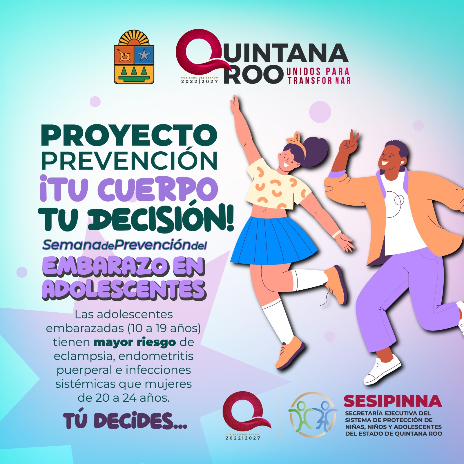 PODER Y CRÍTICA | REDACCIÓN | La Secretaría Ejecutiva del Sistema de Protección de Niñas, Niños y Adolescentes (SIPINNA) del Estado de Quintana Roo lanza un llamado a dependencias, gobiernos municipales, asociaciones civiles, docentes y madres y padres de familia para sumarse a la campaña #ProyectoPrevención #TuCuerpoTuDecisión, con el fin de concientizar a las y los adolescentes acerca de la importancia de la planificación familiar.
