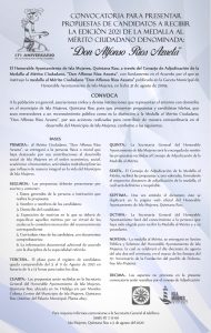 De acuerdo con la convocatoria, dichas medallas se entregarán, a la persona física o moral que haya destacado por sus contribuciones de orden turístico y por sus contribuciones al desarrollo social de Isla Mujeres en el orden económico, social, académico o humanístico, actividades multidisciplinarias que influyen de manera integral en la vida del municipio.