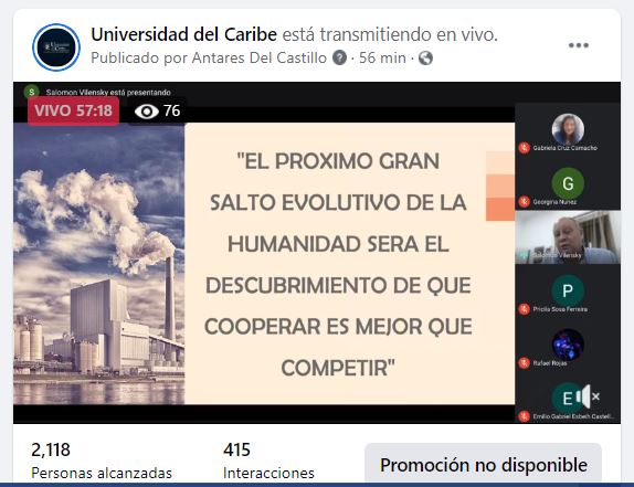 Cancún, Q. Roo, jueves 12 de noviembre de 2020, poderycrítica.- En un esfuerzo de vinculación internacional e interuniversitario, la Universidad del Caribe transmitió la conferencia virtual «Emprendedurismo en tiempos de pandemia», del doctor Salomón Vilensky, CEO del Parque Industrial Dalton, un claro ejemplo de desarrollo y bienestar comunitario, surgido desde la cooperación entre empresas, universidades y el gobierno de Israel.