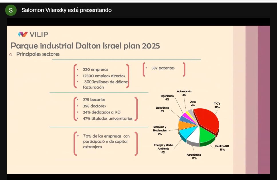 Durante su conferencia, el CEO del Parque Industrial Dalton en Israel, expuso que no es la competencia, sino la cooperación entre industrias, universidades y gobierno, lo que ha generado grandes casos de éxito económico y bienestar social en ese país.