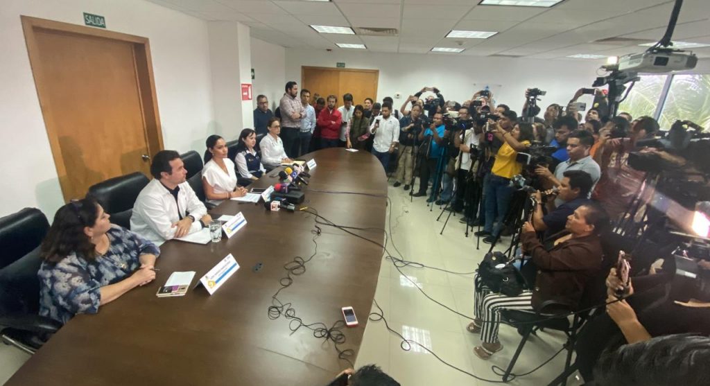 En compañía de las secretarias de Salud y Turismo de Quintana Roo, Alejandra Aguirre y Marisol Vanegas, reiteró que como parte de los protocolos, desde el pasado miércoles al medio día se convocó al Comité de Salud Municipal para abordar el caso de Crucero de MSC Meraviglia, trabajar de manera coordinada y dar garantías a los turistas y habitantes de Cozumel.