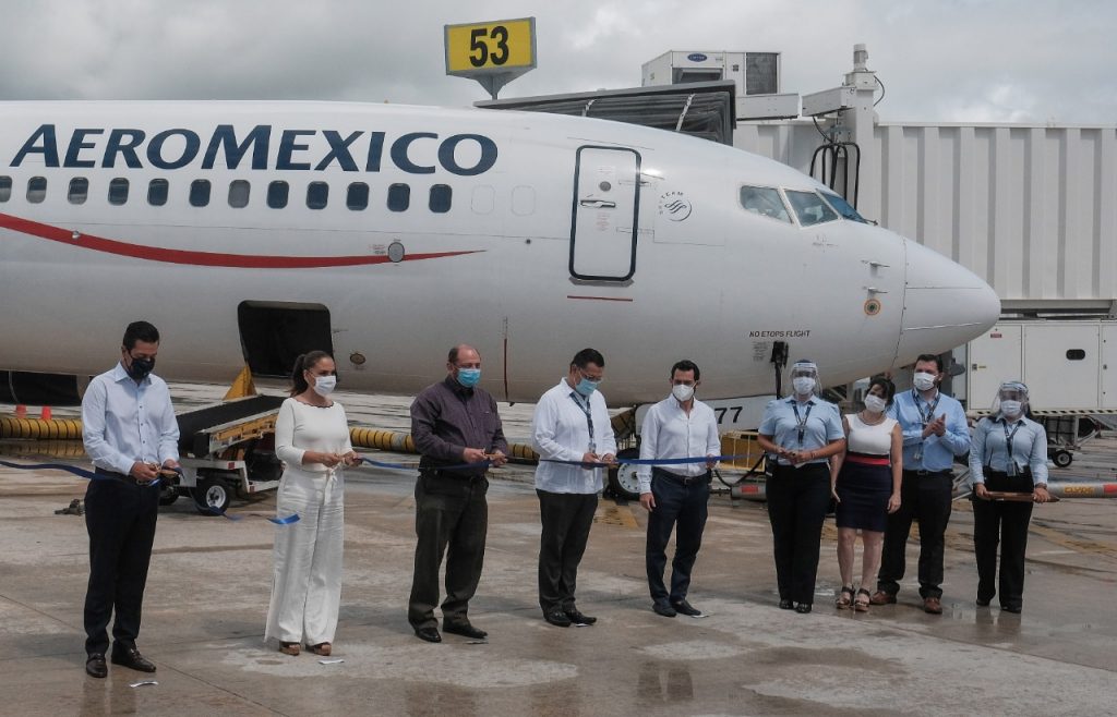 Cancún, Q. Roo, Jueves 10 de Septiembre de 2020, poderycrítica.- “Cancún avanza en una reactivación económica paulatina pero a paso firme; Cancún está más vivo que nunca y de pie”, enfatizó la Presidente Municipal Mara Lezama al atestiguar la llegada del vuelo y cortar el listón para reinaugurar la ruta Guadalajara – Cancún de la aerolínea Aeroméxico.