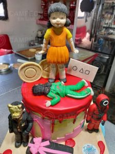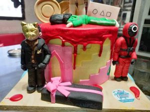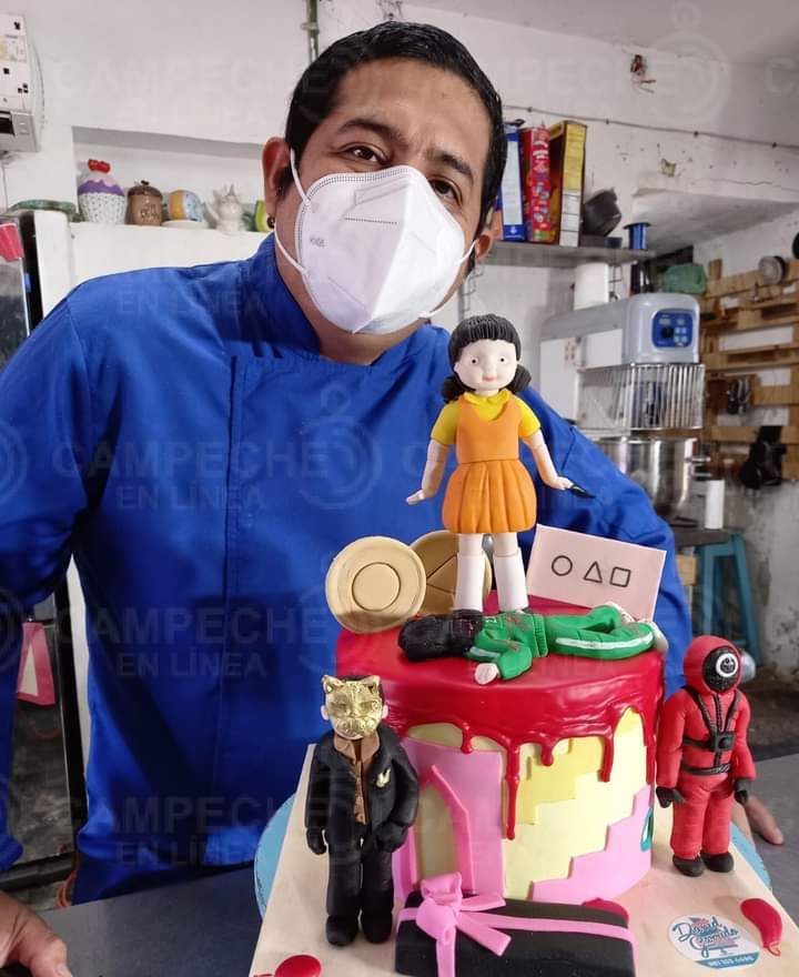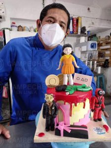 Cancún, Q. Roo, Martes 28  de Septiembre de 2021, poderycrítica.-  El chef campechano David Garrido elaboró pastel temático de la serie surcoreana del momento, donde recreó la popular escena del programa.