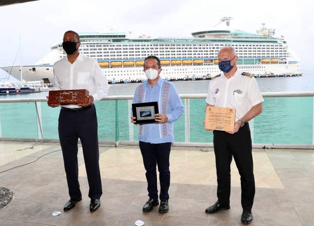 Cozumel, Q. Roo, miércoles 16 de junio de 2021, poderycrítica. – Después de 15 meses de inactividad en el turismo de cruceros por la pandemia de covid-19, este miércoles se reactivó la llegada de embarcaciones a Quintana Roo con el arribo del Adventure of the Seas de la empresa Royal Caribbean International.