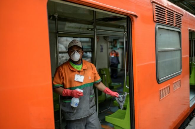 México, 19 marzo; poderycritica.-Trabajadores del metro de Ciudad de México sanean y desinfectan todos los días 316 trenes de este sistema, que transporta a seis millones de pasajeros diariamente, como medida para mitigar el impacto del coronavirus en el país, que ya tiene al menos 118 personas infectadas.