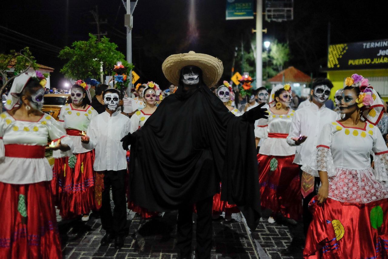 Decenas de catrinas zarparon por las aguas del Mar Caribe y arribaron a la orilla de este emblemático lugar que diariamente recibe visitantes de todas partes del mundo, quienes vivieron esta colorida festividad.