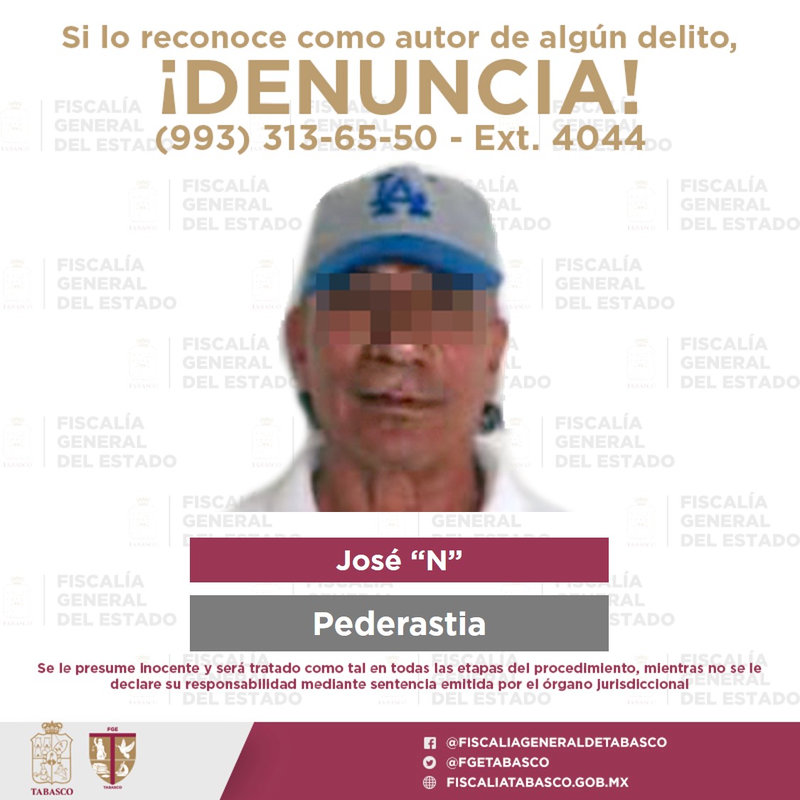 Este martes, en el municipio de Paraíso se dio cumplimiento al mandato del Juez de Control de la Región Judicial 5, en contra de José “N”, por el delito de pederastia.