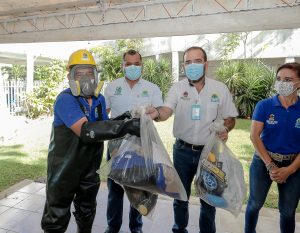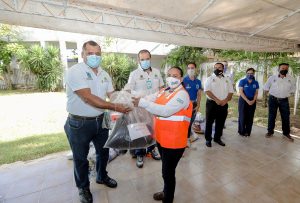 El director general de la CAPA, Gerardo Mora Vallejo, acompañado del secretario general del Sindicato Único de trabajadores (SUTECAPA), Antonio Torres Ávila, personal administrativo y la gerente del organismo operador Othón P. Blanco, Irma Reyes Mancera, encabezó la entrega simbólica de elementos indispensables para el trabajo diario de mil 262 personas que integran la plantilla laboral en los municipios de Othón P. Blanco, Bacalar, Felipe Carrillo Puerto, Lázaro Cárdenas, José María Morelos, Tulum, Cozumel, así como las delegaciones en Solidaridad y Benito Juárez.