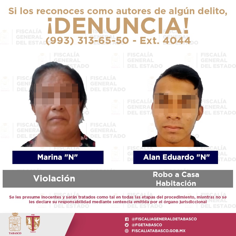 Asimismo, se detuvo a Marina “N”, como presunta responsable de violación en agravio de una menor de edad, según consta en la causa penal 312/2022. La imputada fue localizada en la ranchería 20 de noviembre, del municipio de Macuspana.