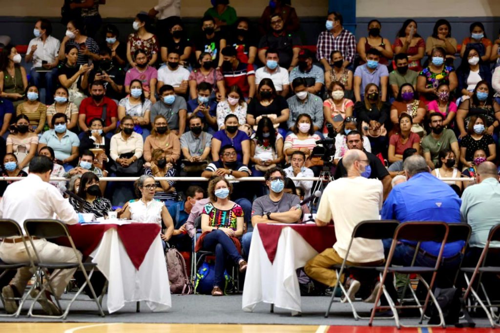La representante de la Organización de Ejidos Productores Forestales de la Zona Maya, Victoria Santos Jiménez, expuso que quienes se oponen a la obra del tren no son mayas y destacó que el proyecto puede mitigar los probables impactos ambientales, al tiempo que se apoya a las comunidades de la región.