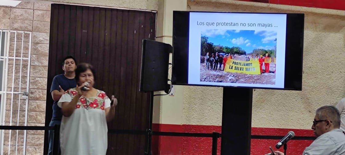 La representante de la Organización de Ejidos Productores Forestales de la Zona Maya, Victoria Santos Jiménez, expuso que quienes se oponen a la obra del tren no son mayas y destacó que el proyecto puede mitigar los probables impactos ambientales, al tiempo que se apoya a las comunidades de la región.