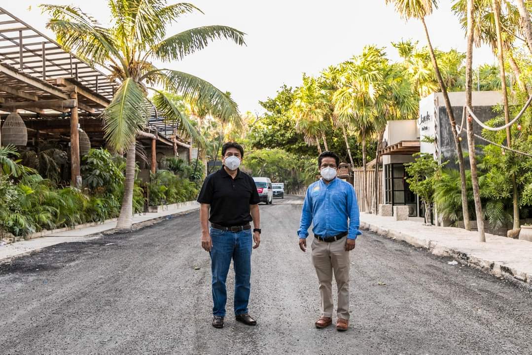 “Cada obra que realizamos es respuesta de nuestro compromiso con los tulumnenses y nuestro destino al que cuidamos con acciones, conocemos lo que se requiere y estamos en comunicación permanente con la iniciativa privada, porque en este gobierno el desarrollo es para todos, porque entre todos cuidamos a Tulum y trabajamos en cada rincón de nuestro destino para lograrlo”, destacó el edil Víctor Mas, durante el recorrido de supervisión que hizo acompañado del director general de Obras y Servicios Públicos, Abimael Reyes, para verificar dichos trabajos.