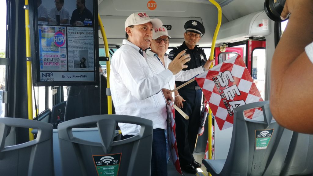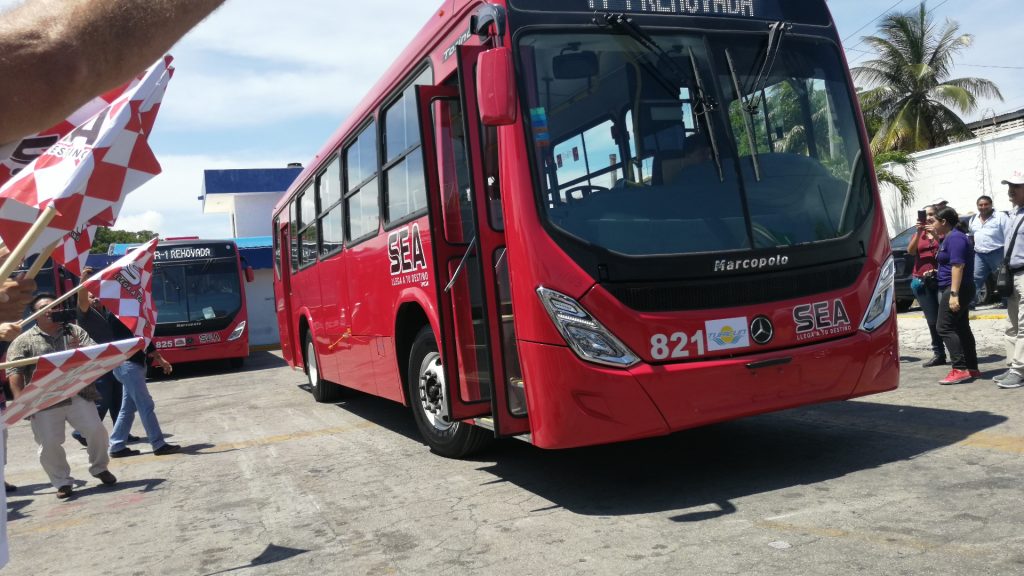 Este primer bloque de vehículos modernos forman parte de un proyecto de 150 unidades que se incorporarán al servicio de transporte público en Cancún, comenzando a operar en la Zona Hotelera.