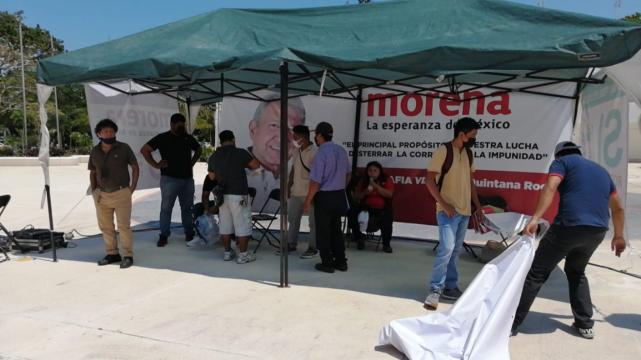 Desde el lunes pasado, un grupo de morenistas afines a la senadora Marybel Villegas Canché y apoyados por el Secretario General de ese partido, Jorge Parra Moguel, mantienen una manifestación frente al Palacio Municipal de Benito Juárez (Cancún), para exigir que se rompa la alianza con el Verde Ecologista, pues dicen que no comulga con los principios de “no robar, no mentir y no traicionar al pueblo”.