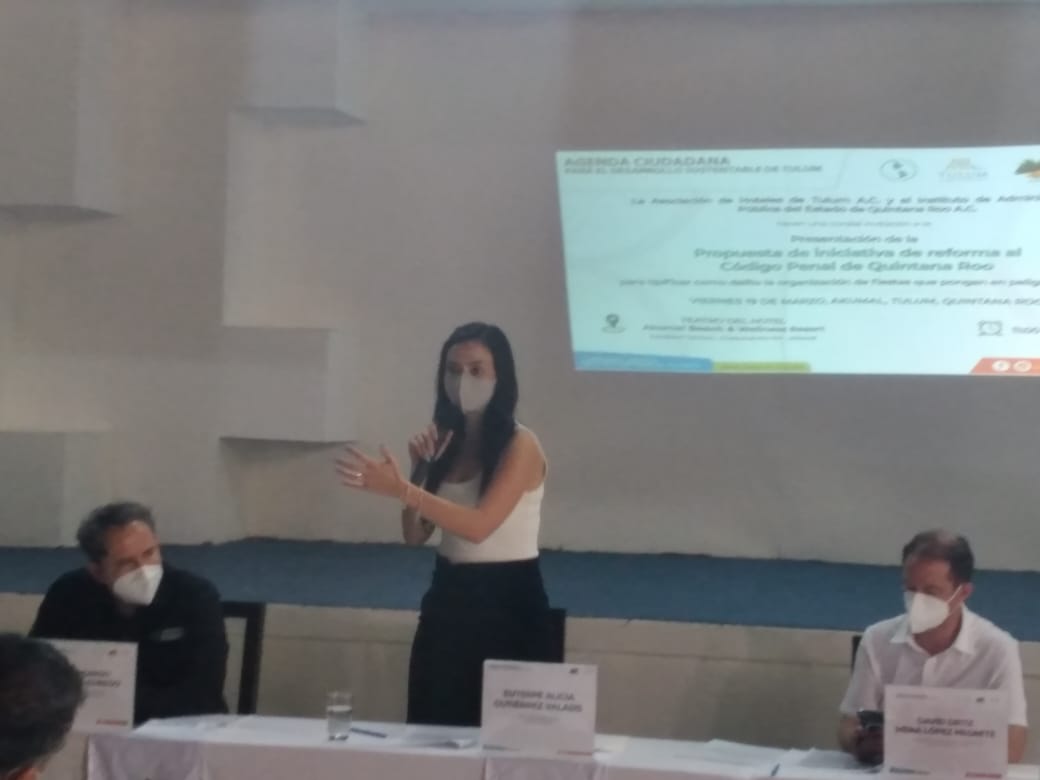 Tulum, Q. Roo, viernes 19 de marzo de 2021, poderycrítica.- La diputada Euterpe Gutiérrez Valasis, se comprometió a agilizar la “Propuesta de iniciativa de Reforma al Código Penal de Quintana Roo” de la Asociación de Hoteles de Tulum para tipificar como delito la organización de fiestas que pongan en peligro la salud, para que sea sometida aprobación, en su caso, en el pleno de la XVI Legislatura.