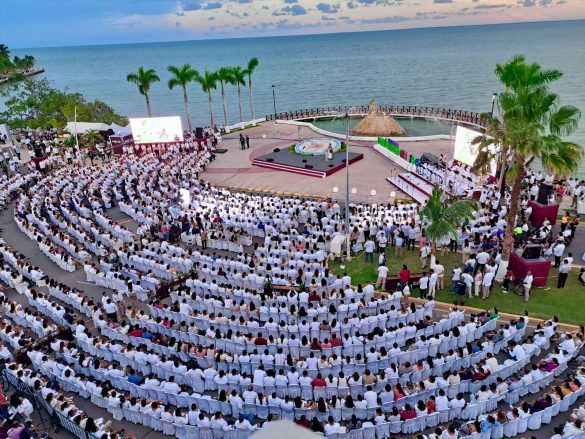 Ante miles de quintanarroenses que la acompañaron en la Fuente del Pescador, símbolo donde inicia México en esta capital de Quintana Roo, la Gobernadora hizo un recuento de logros en este año histórico con resultados tangibles para la ciudadanía a pesar de la deuda monumental de 20 mil millones de pesos heredada de gobiernos pasados y una deuda de corto plazo a proveedores de casi 7 mil 500 millones de pesos que prácticamente había paralizado la gestión.