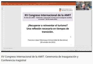Tras la inauguración se transmitió la conferencia magistral «¿Recuperar o reinventar el turismo? Una reflexión necesaria en tiempos de transición», a cargo del Dr. Francisco López Palomeque, de la Universidad de Barcelona.