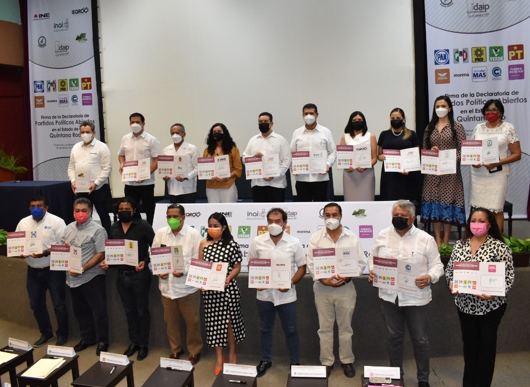 PODER Y CRÍTICA | REDACCIÓN | El Instituto de Acceso a la Información y Protección de Datos Personales de Quintana Roo (IDAIPQROO), en coordinación con el Instituto Electoral de Quintana Roo (IEQROO), llevó a cabo la firma de la declaratoria de “Partidos Políticos Abiertos Quintana Roo 2022”, que tiene como objetivo promover un voto informado, responsable y reflexivo para garantizar que los ciudadanos tomen conciencia de su participación en los procesos electorales y sus decisiones permeen en la sociedad quintanarroense.