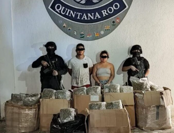Playa del Carmen, Quintana Roo, Jueves 25 de Noviembre del 2021, Poder y Crítica | Agentes de la Policía Estatal detuvieron a dos personas en una vivienda del fraccionamiento Villas del Sol, esta tarde, en posesión de 65 kilogramos de aparente marihuana.