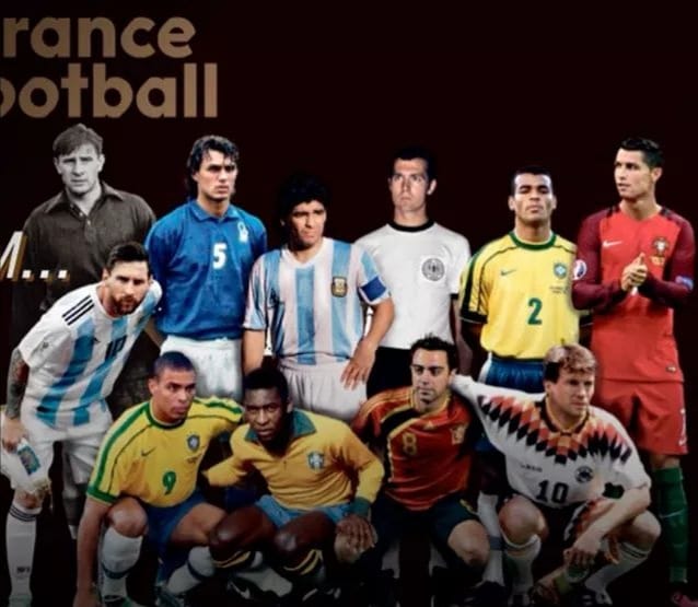 Lev Yashin, Cafú, Beckenbauer, Maldini, Xavi, Matthäus, Pelé, Maradona, Messi, Ronaldo y Cristiano Ronaldo.