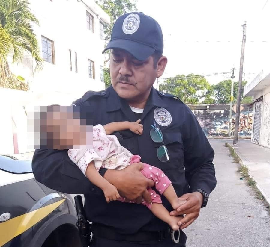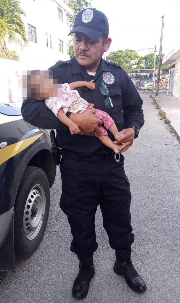 PODER Y CRÍTICA | REDACCIÓN | Oficiales de la Policía Quintana Roo Benito Juárez resguardaron a una menor que se encontraba abandonada en un pasillo de la Supermanzana 64.