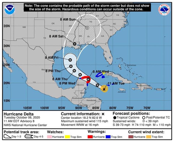 Chetumal, Q. Roo, Martes 06 de Octubre de 2020, poderycrítica.- Carlos Joaquín informó por medio de su cuenta en Twitter que el huracán Delta mantiene su trayectoria rumbo a la zona norte de Quintana Roo y que a intensificado su fuerza convirtiéndolo en categoría 3.