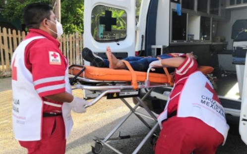 Paramédicos de la Cruz Roja acudieron al sitio para valorar a la fémina por las lesiones sufridas durante la caída desde el vehículo, mientras elementos de la Policía Quintana Roo tomaban conocimiento de lo ocurrido.