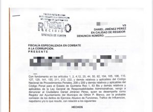 Ahora, fue presuntamente denunciado ante la Fiscalía Especializada en Combate a la Corrupción, por la probable comisión de los delitos de ejercicio abusivo de sus funciones, tráfico de influencias, nepotismo y lo que resulte.