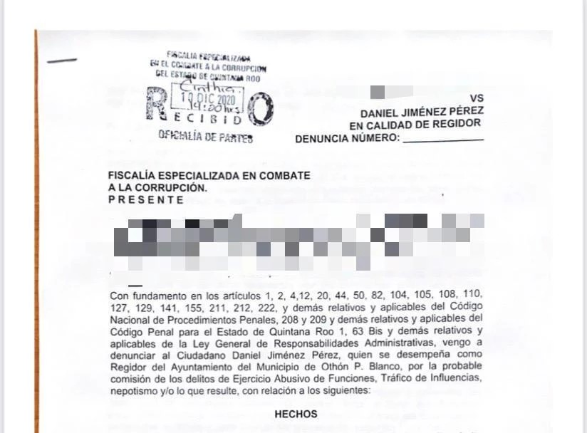 Chetumal, Q. Roo, Lunes 14 de Diciembre del 2020, poderycrítica.- El regidor de Othón P. Blanco, Daniel Jiménez Pérez, quien dejó sus responsabilidades para viajar a Brasil para jugar fútbol playero, fue denunciado por presunto nepotismo al mantener como asistente a su cuñada dentro de la nómina del Ayuntamiento capitalino.