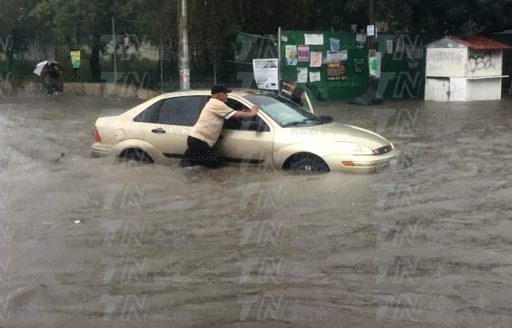 Vehículos fueron rebasados por el agua en varias zonas de la ciudad.