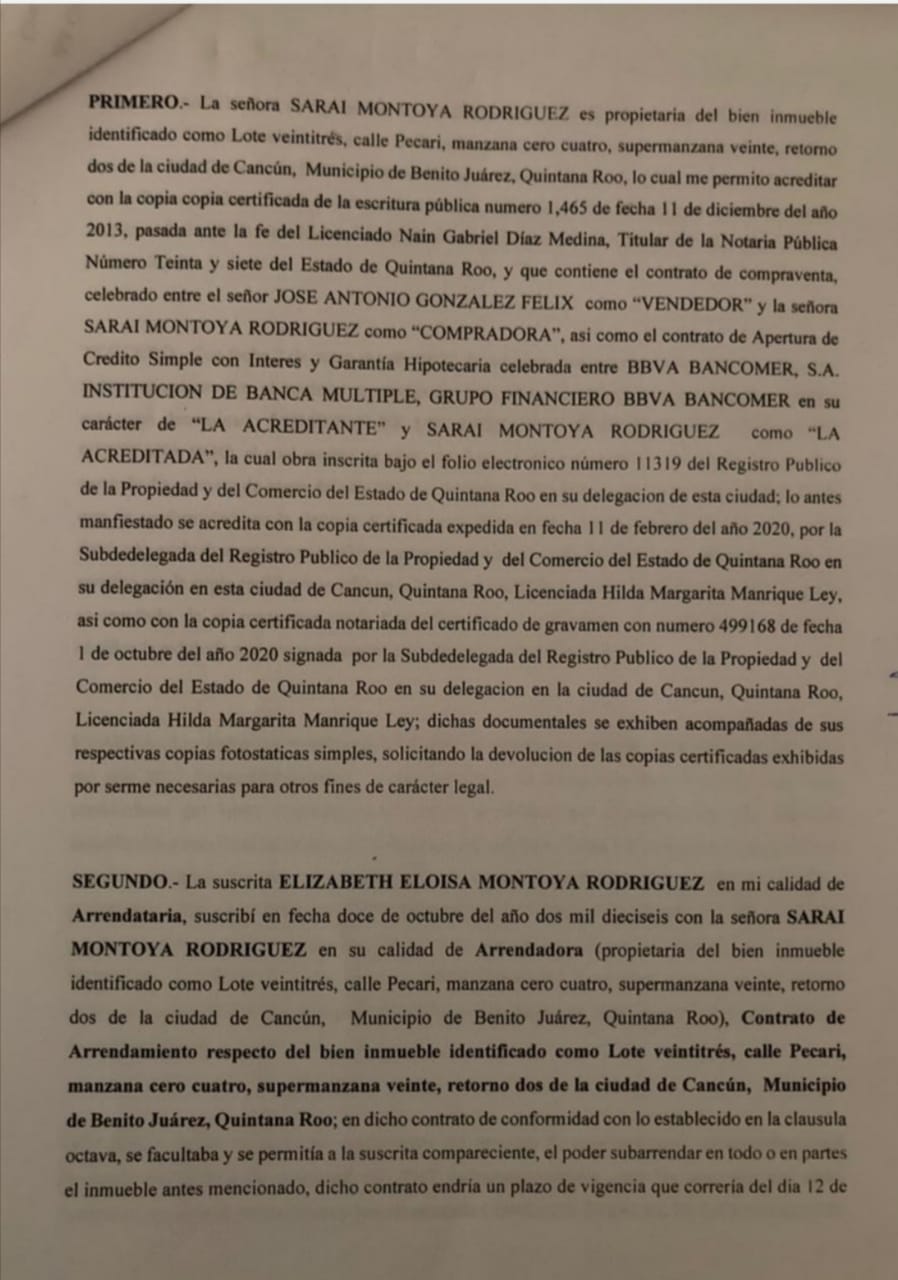 Desde el uno de enero de 2018 Toh Euan no se digna a pagar la renta del inmueble ubicado en la Supermanzana 20, manzana 4, calle Pecari lote 23, de Cancún, tal como consta en una demanda promovida por Eloisa Elizabeth Montoya Rodríguez.