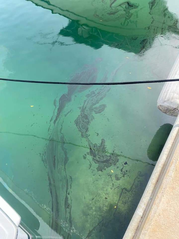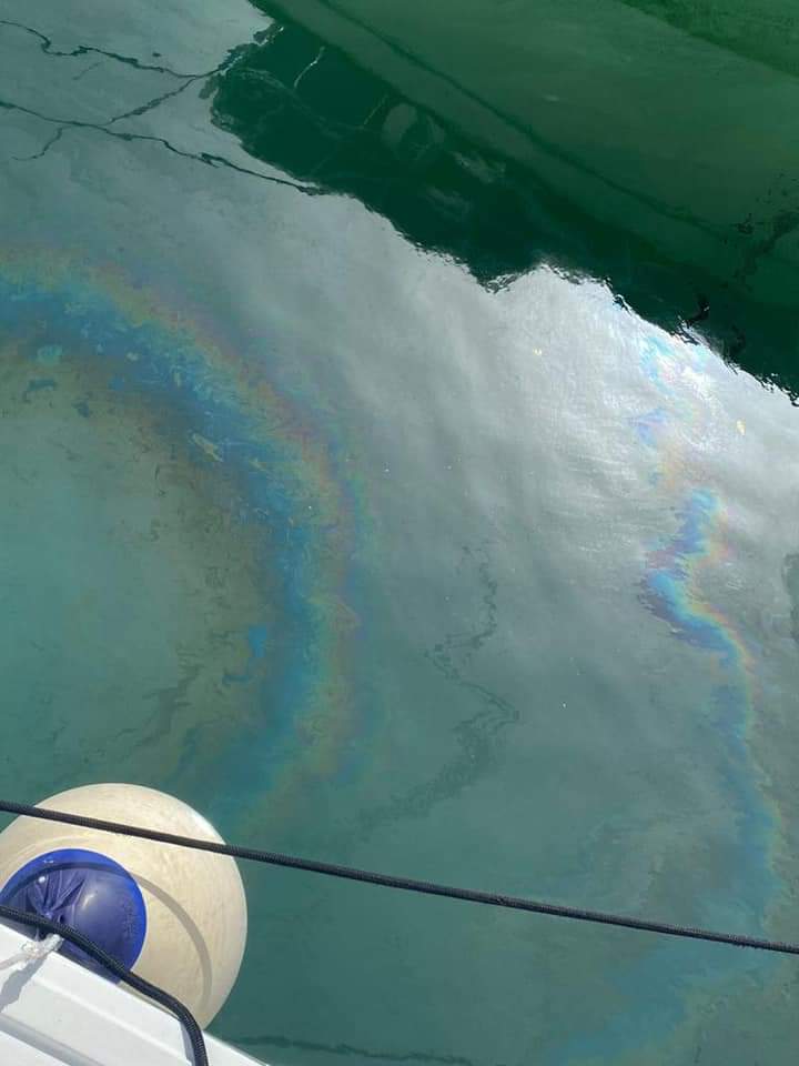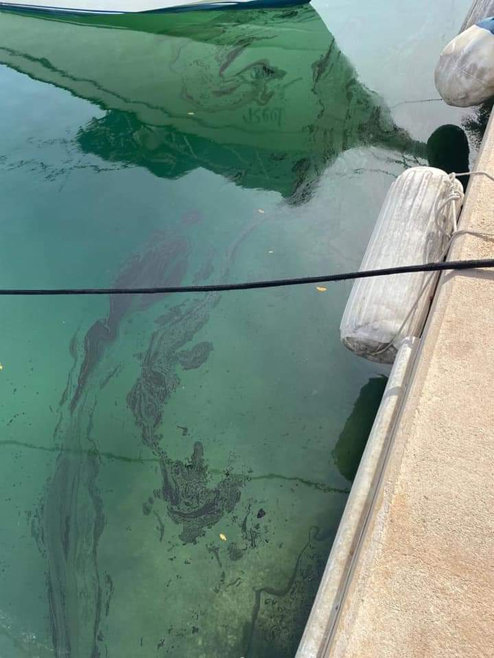 «Me enviaron estas fotos de la Marina de Puerto Aventuras, donde se ve un derrame de gasolina o aceite», difundió.