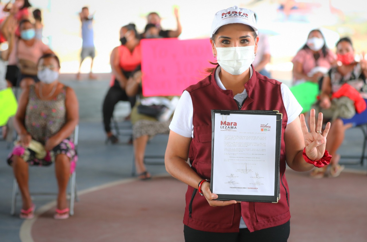Cancún, Q. Roo, Jueves 13 de Mayo de 2021, poderycrítica.- “Estoy convencida que el crecimiento de Cancún, que ha sido extraordinario y sumamente exitoso, debe ir de la mano con la reconstrucción del tejido social y de acortar las brechas de desigualdad que existen”, resaltó Mara Lezama al firmar otro de sus compromisos de campaña.