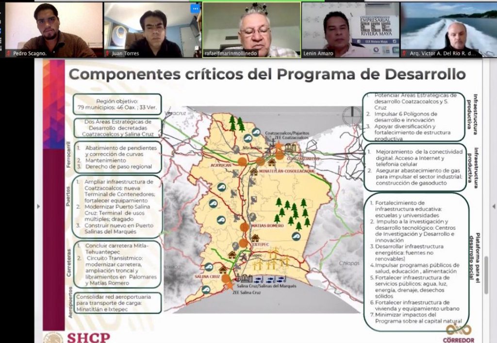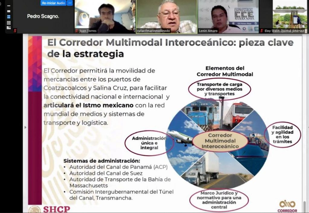 Solidaridad, Q. Roo, Miércoles 05 de Agosto de 2020, poderycrítica.- La Asociación Nacional de Consejos Empresariales Regionales (ANCER) Organizo la presentación del proyecto del Corredor Interoceánico Istmo de Tehuantepec que permitirá la movilidad de mercancías entre los puertos de Coatzacoalcos y Salina Cruz facilitando la conectividad nacional e internacional, señaló el encargado del proyecto Rafael Marín Mollinedo.