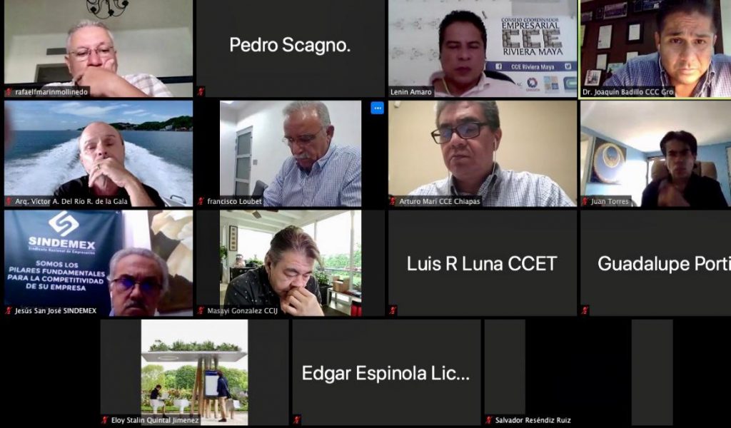 En la presentación virtual el Presidente CCE La Paz, Francisco Loubet; Presidente CCE Veracruz Norte, Salvador Reséndiz; Presidente CCE Guerrero, Joaquín Badillo; Presidente CCE Nayarit, Juan Topete; Presidente CCE Hidalgo, Edgar Espíndola; Presidente CCE Chiapas- Arturo Marí ; Presidente del CCE Campeche – Víctor del Río; Presidente del CCE Chetumal, Eloy Quintal; Presidente del CCE Tabasco, Luis Rodríguez; Presidente del CCE Jalisco, Masayi González Uyeda y el secretario técnico de ANCER, Juan Velázquez, Presidente SINDEMEX RM Jesús San José, Arq. Guadalupe Portilla Presidente Colegio de Arquitectos e Ingenieros de Tulum.
