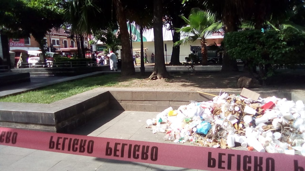 DESINFECTAN EL PARQUE JUÁREZ ENTRE MONTONES DE BASURA