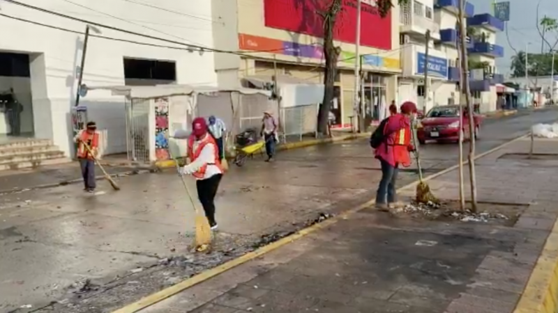 Alrededor de 100 trabajadores del ayuntamiento barrieron y recogieron los desechos que se generaron luego de la celebración de Año Nuevo, principalmente por la quema de pirotecnia y del famoso “año viejo”.