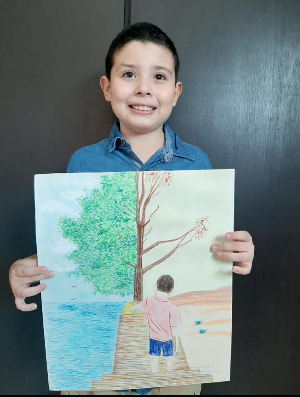 El infante se hizo acreedor a esta distinción por su propuesta titulada «Elección», dibujo en el que expone su preocupación sobre la destrucción del planeta y sus consecuencias, toda vez que responde al tema del certamen: «En situaciones de emergencias, participamos activamente reconstruyendo un mundo mejor».