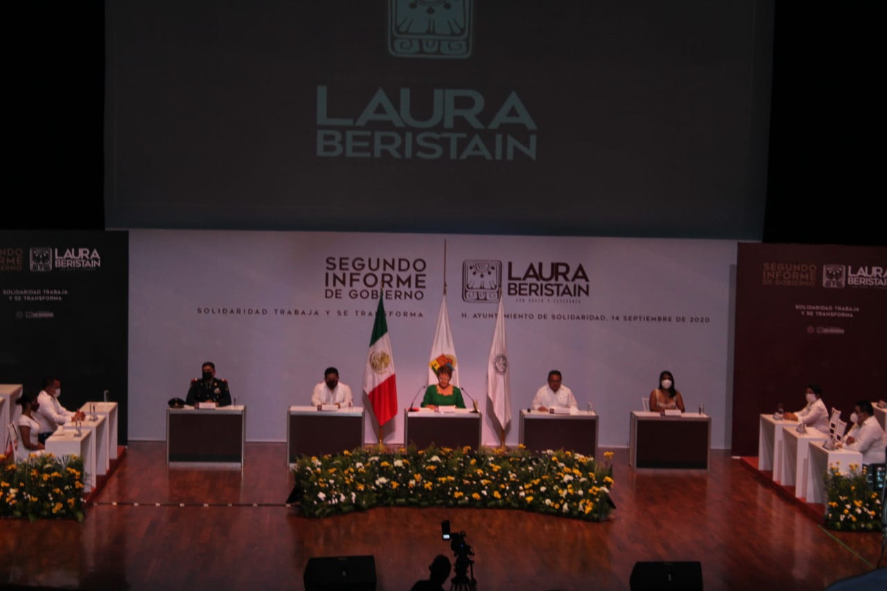 Playa del Carmen.- La atención en salud, infraestructura urbana y vivienda entre otros rubros, han sido las principales prioridades durante los dos años de su administración, afirmó la presidenta municipal de Solidaridad, Laura Beristaín Navarrete en su segundo informe de labores.