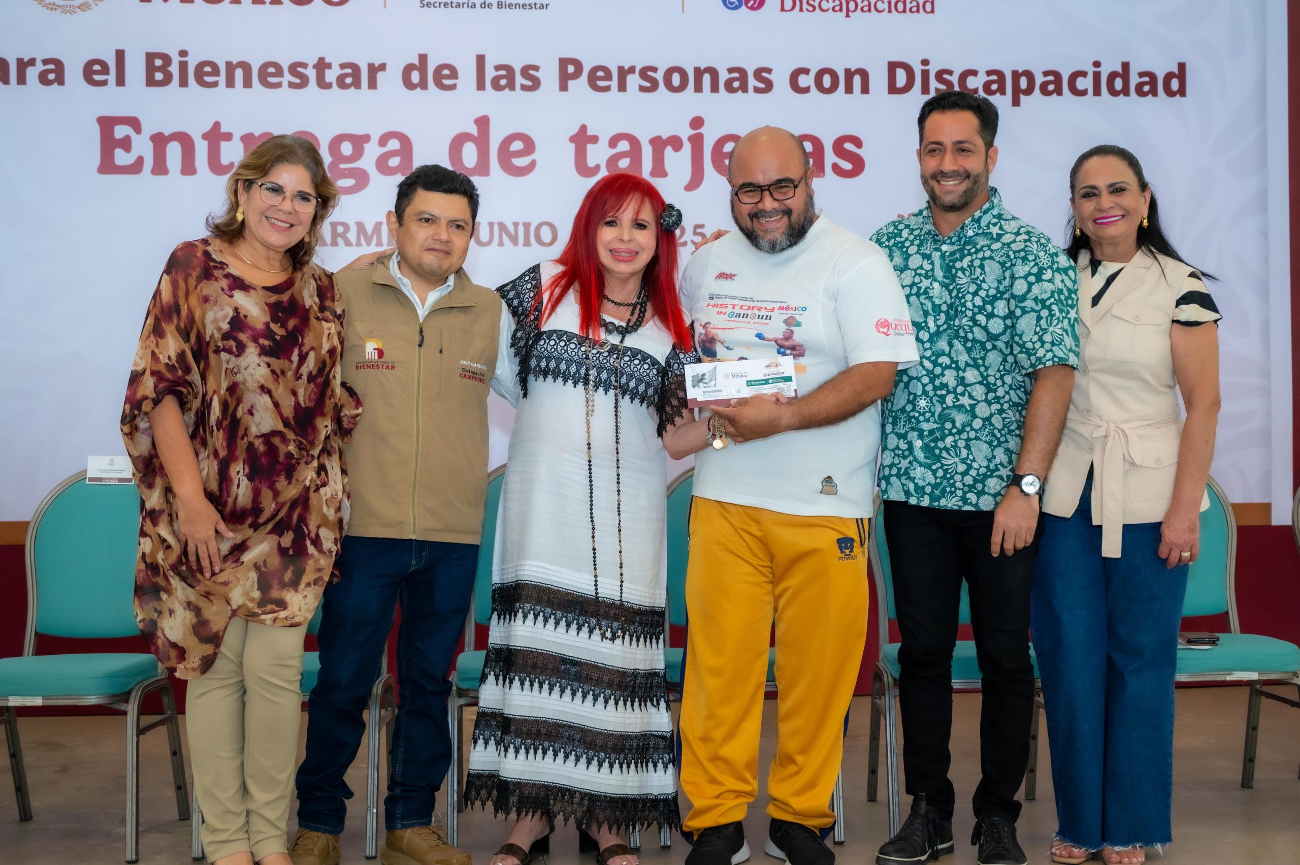Acompañada del titular en Campeche de los Programas del Bienestar, José Cardozo Rivero; de la secretaria de Gobierno, Liz Hernández Romero, y del alcalde carmelita, Pablo Gutiérrez Lazarus, la Gobernadora destacó que este programa no sólo representa un apoyo económico, sino un reconocimiento a la lucha diaria de las personas con alguna discapacidad.