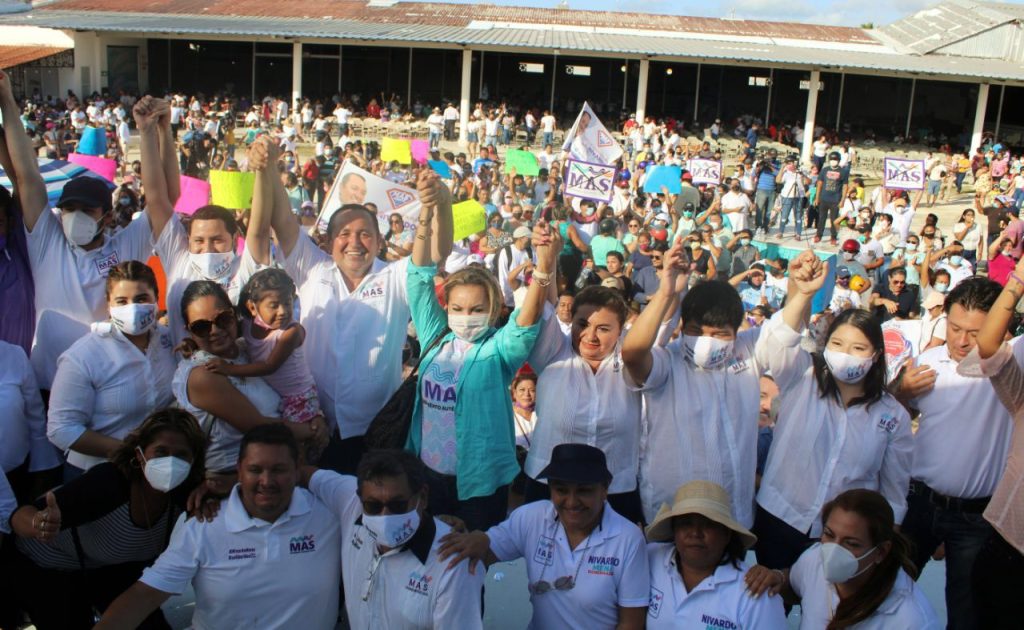 En su arranque de campaña, Nivardo Mena Villanueva, estuvo acompañado por su familia, además de la presencia del dirigente estatal del MAS, José Antonio Monroy Mañón; Celia Meso, del sindicato de jubilados, entre otras personalidades y liderazgos.