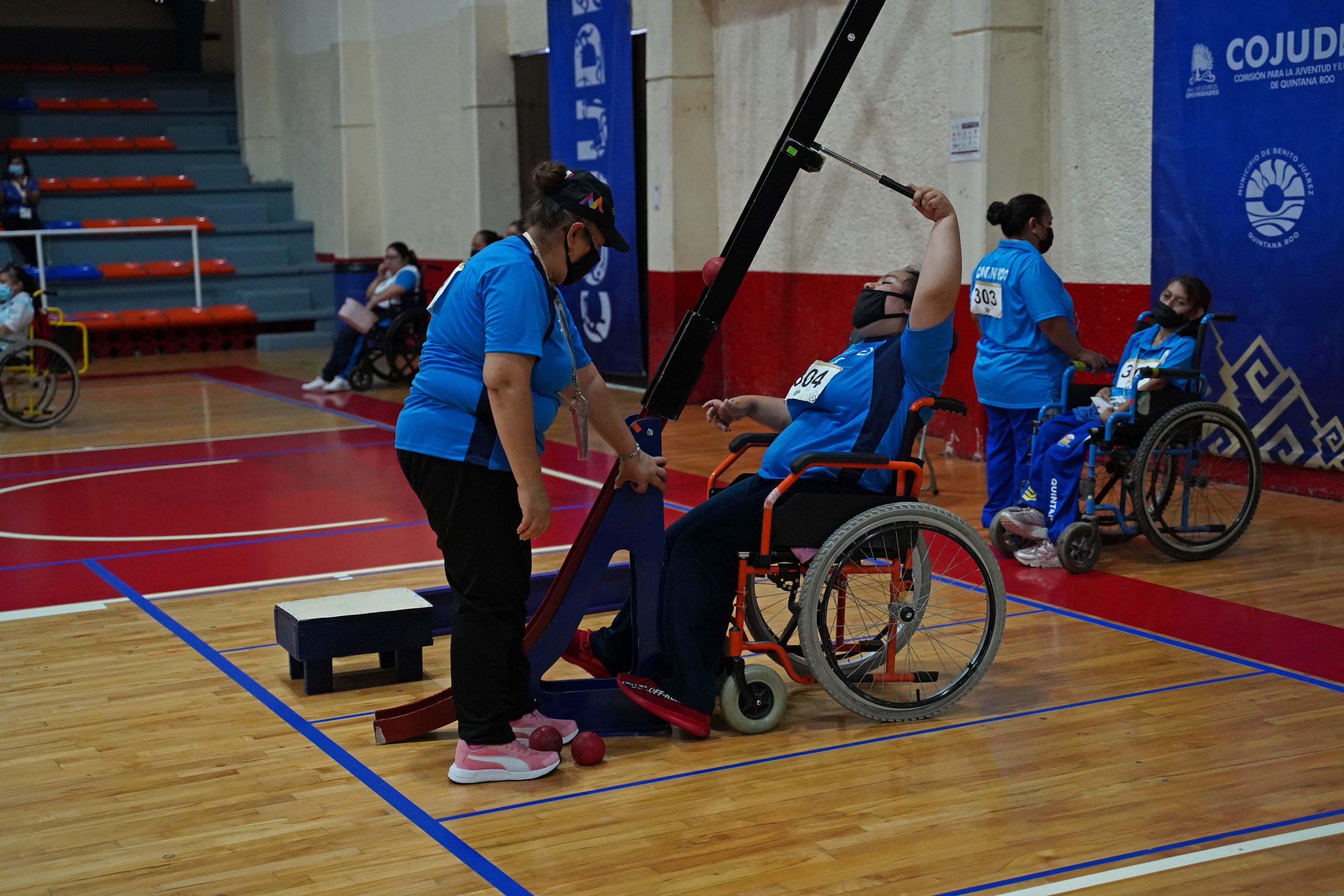 Cancún, Q. Roo, Viernes 22 de Octubre de 2021, poderycrítica.- Con una buena actuación y entregando todo en cada encuentro, la jugadora oriunda de Tulum, Neydi Guadalupe Cupil Tun se adjudicó el cuarto lugar en la prueba de BC3 de la disciplina de Boccia, esto luego de disputarse los partidos por los bronces durante el segundo días de actividades de este deporte, que se escenificó en el Gimnasio de Usos Múltiples del «Kuchil Baxal».
