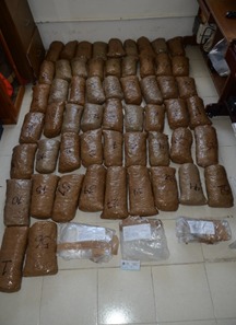 Al realizar la inspección al interior del vehículo, se les aseguraron 56 paquetes con marihuana, con un peso total de cincuenta y cinco kilos seiscientos ochenta y cuatro gramos.