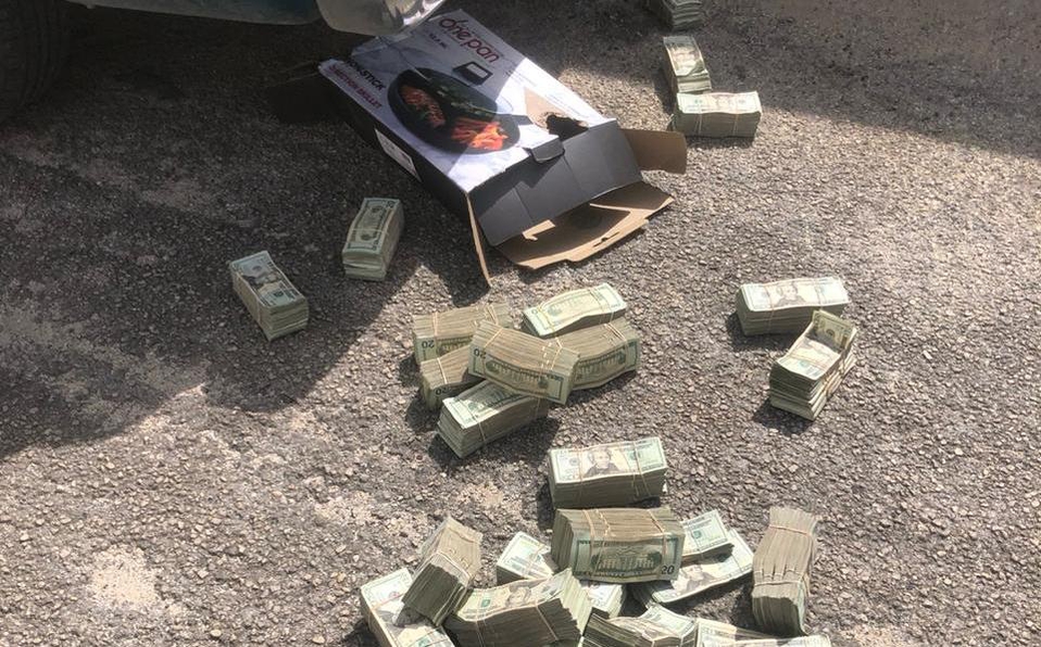 En todo esto, uno de los sujetos arrojó dos cajas de cartón que en su interior contenían aproximadamente 300 mil dólares americanos. Los sujetos no pudieron comprobar su procedencia, por lo que se realizó la detención de cinco personas.