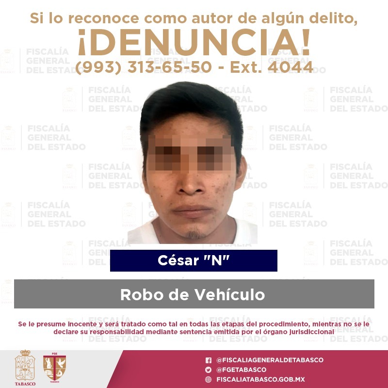 La Policía de Investigación detuvo a Santiago “N”, por los delitos de robo de vehículo con violencia en pandilla y robo a casa habitación, cometidos en el municipio de Huimanguillo, en agravio de una persona del sexo femenino.