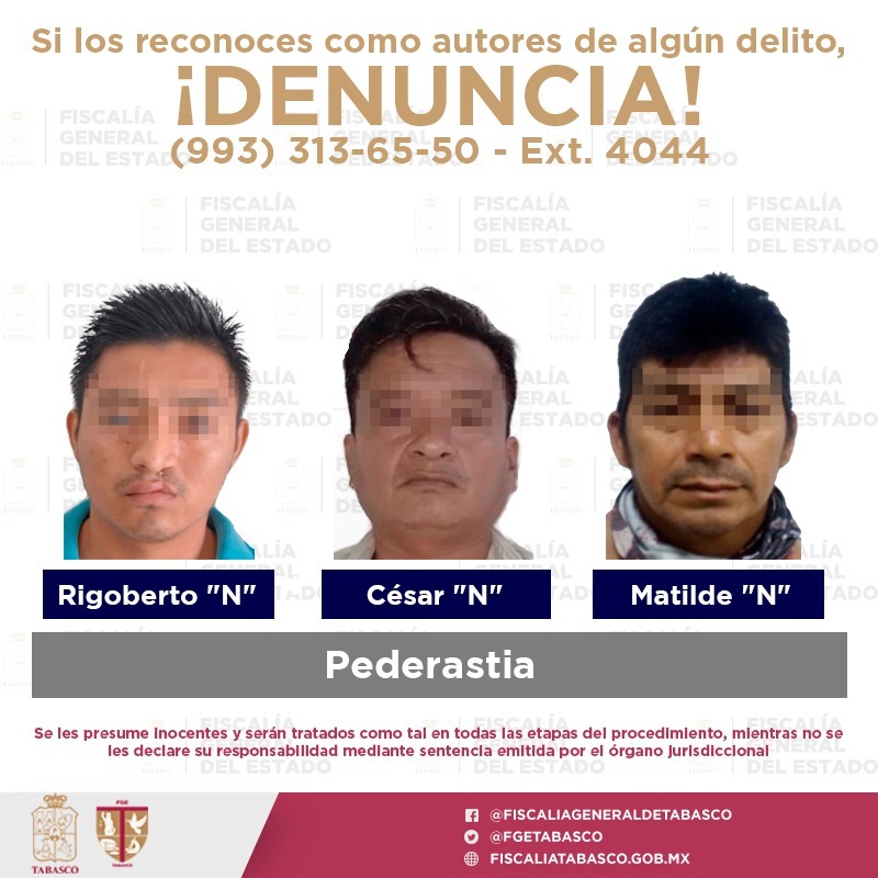 En tanto, en la ranchería San Hipólito, de Jalpa de Méndez, se detuvo a Cesar “N”, por su presunta participación en otro hecho de pederastia.