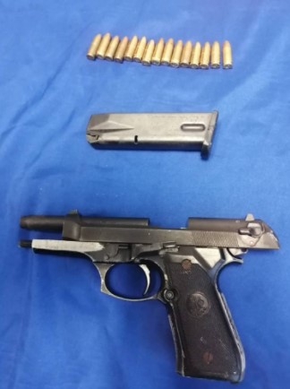 También se reveló que los oficiales aseguraron un arma de fuego tipo escuadra, marca prieto Beretta, color negro, calibre nueve milímetros, con un cargador abastecido con 15 cartuchos útiles.