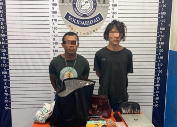 Luego de recibir un reporte este 12 de abril, los oficiales se trasladaron a la calle 15 con avenida 110, donde aseguraron a Alejandro “N” de 28 años de edad, originario de Tabasco y a Carlos “N” de 29 años de edad, originario de Puebla, quienes emprendían la huida tras ser sorprendidos por la víctima y sus vecinos intentando robar 2 maletas, 2 mochilas, 1 portafolio que contenía una laptop, 1 bolsa de tela, 1 bolsa de mano y 1 bolsa pequeña del interior de un domicilio donde habían forzado la entrada.